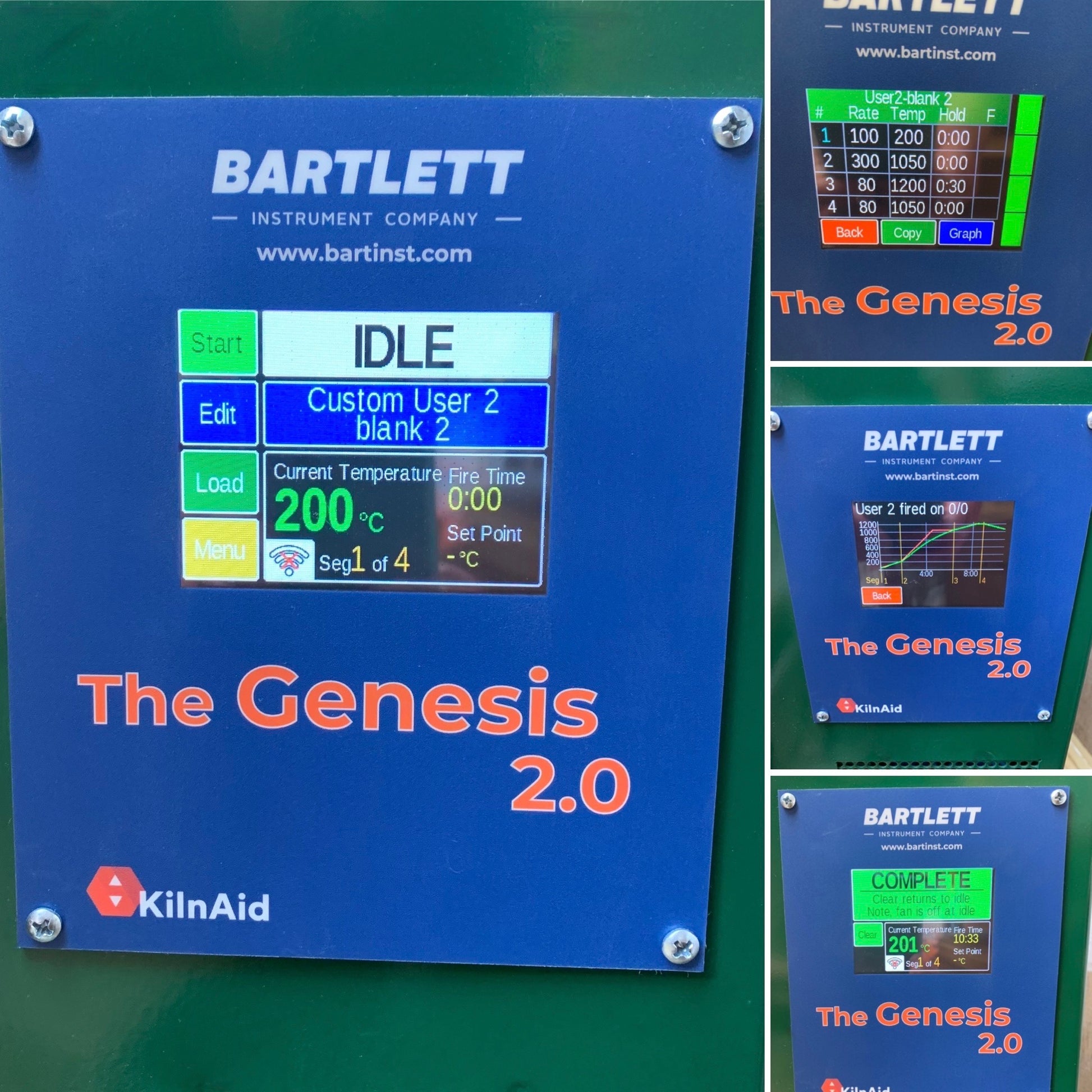 DIMENSIONS: Click here to compare Olympic Kiln Internal & External Dimensions, Amperage requirements and Optional extras including Bartlett Genesis Touchscreen Controller • APM Heavy Duty Elements • Type S Thermocouple • Castors